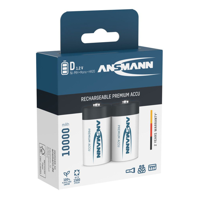 Akumulatory NiMH ANSMANN D/HR20 10000mAh 1.2V - 2szt.