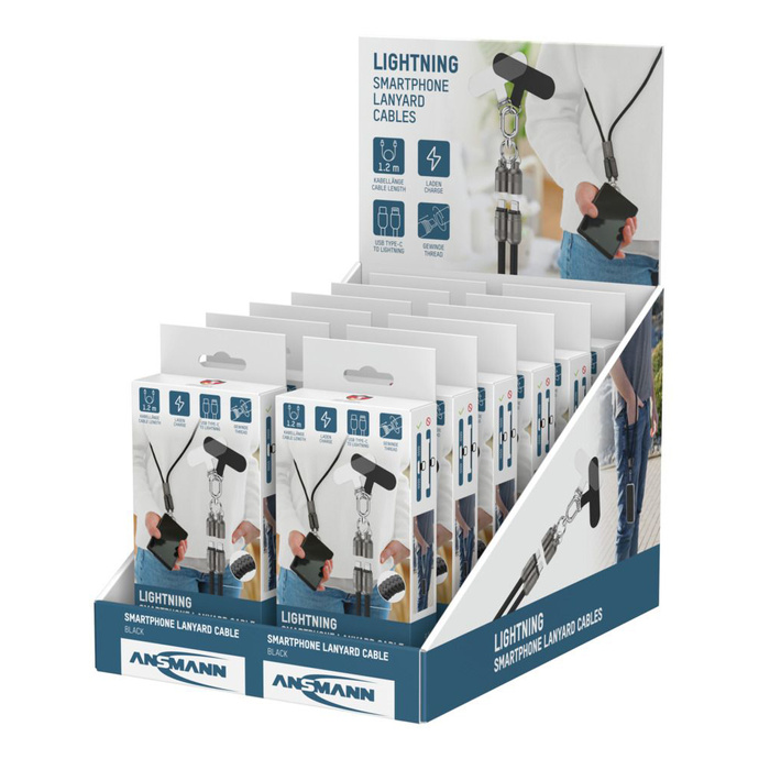 Smycz z kablem USB-C/Lightning ANSMANN 27W 1.2m czarna