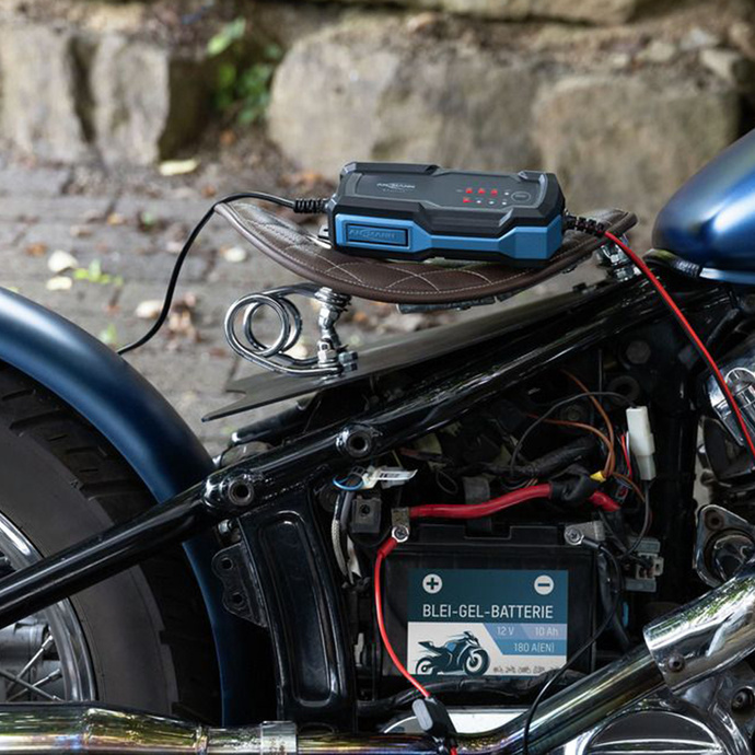 • Obsługa 6 V i 12 V – jedna ładowarka do motocykli, skuterów, aut i sprzętu ogrodowego.