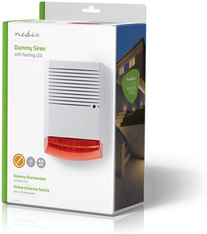 Dzięki realistycznemu wyglądowi zewnętrznej syreny alarmowej i czerwonej, migającej diodzie LED, produkt symuluje działanie profesjonalnego systemu zabezpieczeń, zniechęcając potencjalnych włamywaczy już na pierwszy rzut oka.