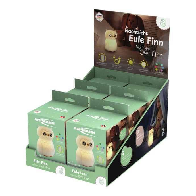 Marka ANSMANN słynie z niezawodnych i bezpiecznych produktów. Lampka sowa łączy przyjazny wygląd, wysoką jakość wykonania i funkcjonalność, zapewniając dziecku spokojny sen i komfortowe oświetlenie nocne.