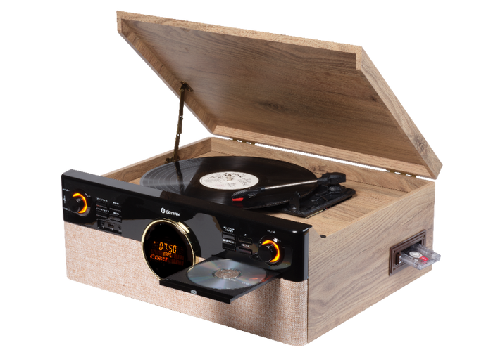 Denver MRD-180 to kompletne rozwiązanie audio dla miłośników zarówno klasycznych, jak i nowoczesnych formatów. Urządzenie pozwala odtwarzać muzykę z płyt winylowych, CD, kaset, radia DAB+/FM, nośników USB oraz przez Bluetooth. Dzięki temu można cieszyć się swoją ulubioną kolekcją muzyki bez względu na jej źródło.
