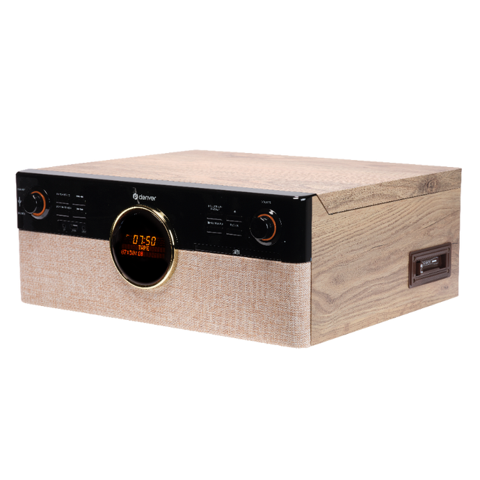 • Obsługiwane źródła: gramofon (3 prędkości z autostopem), CD, kaseta, DAB+, FM, USB, Bluetooth 5.3, AUX