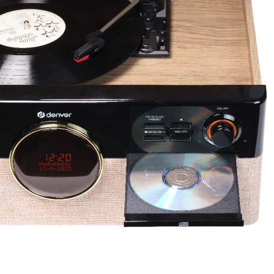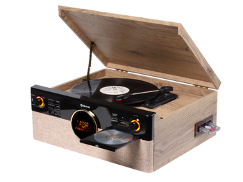 Wbudowany gramofon obsługuje trzy prędkości obrotowe i posiada funkcję autostopu, co ułatwia codzienne użytkowanie. Muzykę z płyt winylowych można również łatwo nagrać na USB, tworząc cyfrowe kopie swoich ulubionych nagrań. To połączenie klasycznego stylu z praktyczną technologią.