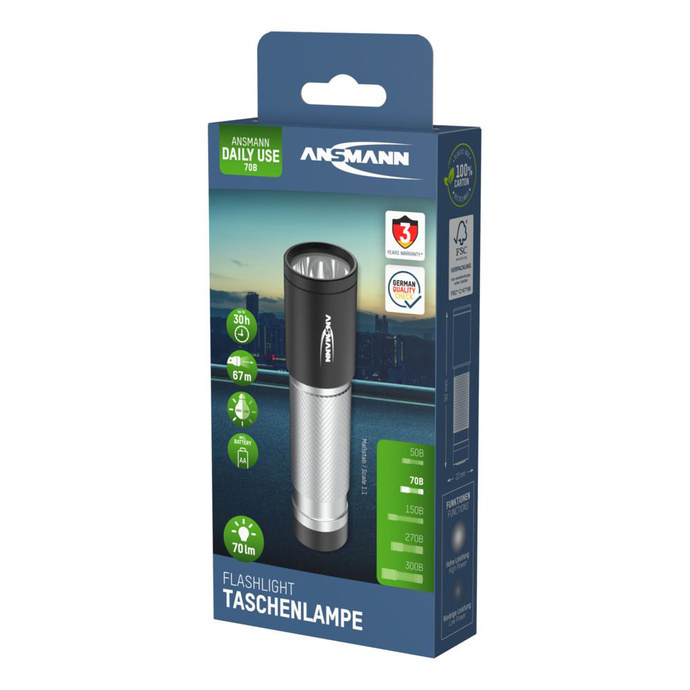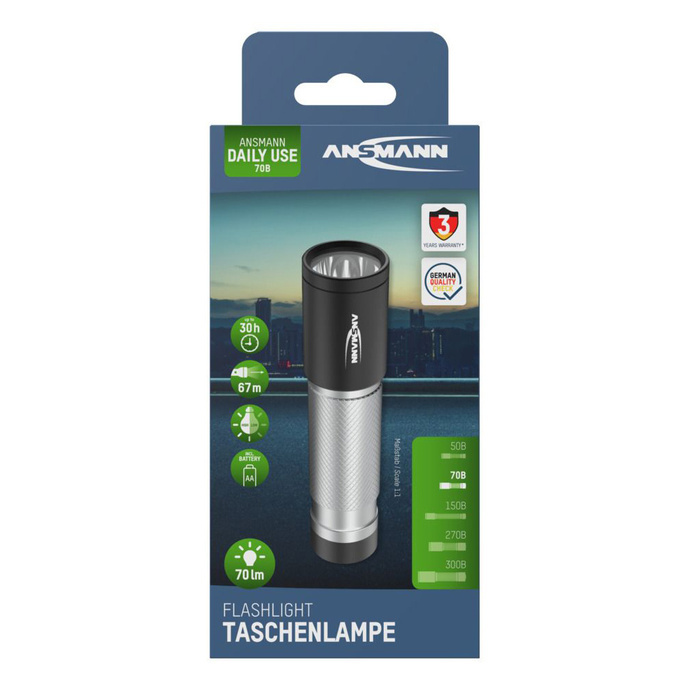Marka ANSMANN to gwarancja solidności i dbałości o każdy detal. Latarka 70B łączy nowoczesną technologię LED z wytrzymałą konstrukcją i ergonomicznym designem, oferując niezawodne źródło światła w każdych warunkach.