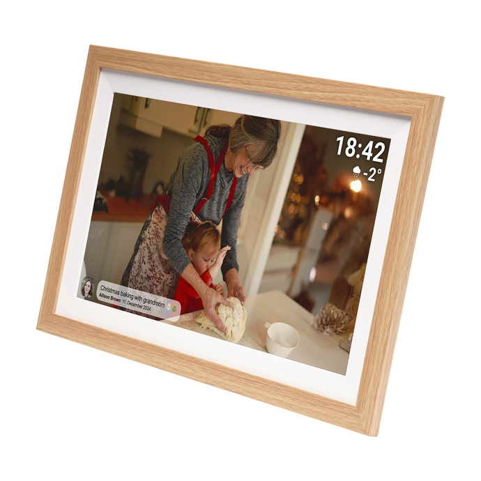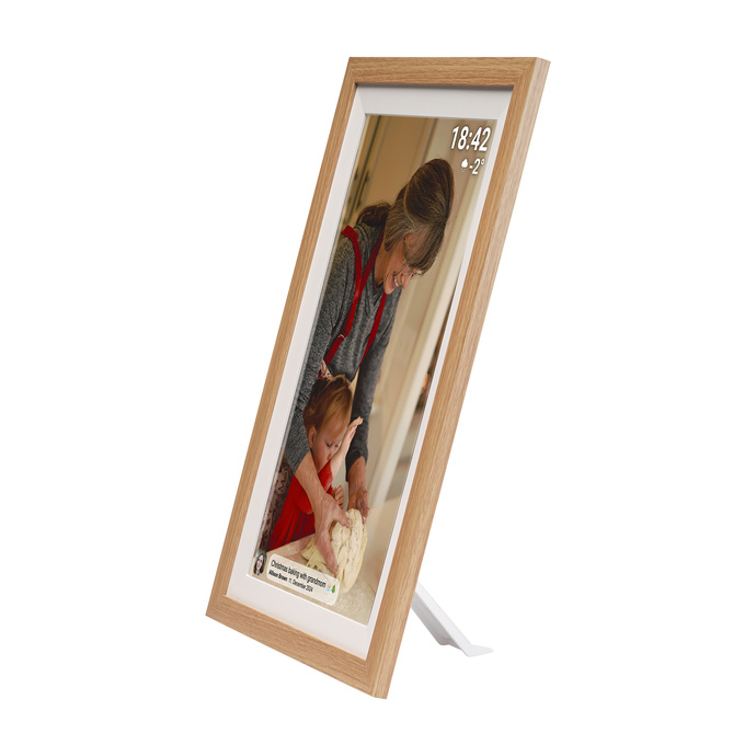 Wbudowana pamięć 16 GB pozwala przechowywać tysiące zdjęć lub krótkich filmów z dźwiękiem. Ramka obsługuje formaty JPEG, PNG oraz MP4, dzięki czemu możesz cieszyć się nie tylko zdjęciami, ale także nagraniami z ważnych chwil.