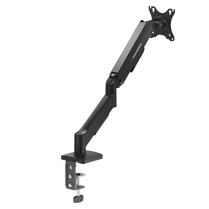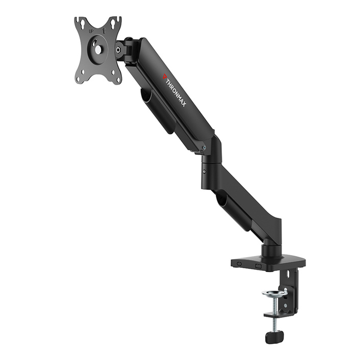 Thronmax MS20 to uchwyt biurkowy na jeden monitor o przekątnej od 17 do 32 cali i wadze 2–9 kg. Taki zakres pozwala zamontować zarówno kompaktowe ekrany biurowe, jak i większe monitory gamingowe lub do pracy wielozadaniowej. Dzięki regulowanemu ramieniu łatwo dosuniesz ekran bliżej, odsuniesz go, ustawisz na odpowiedniej wysokości i odległości od oczu – tak, aby odciążyć kark, barki i kręgosłup podczas wielogodzinnej pracy przy biurku.